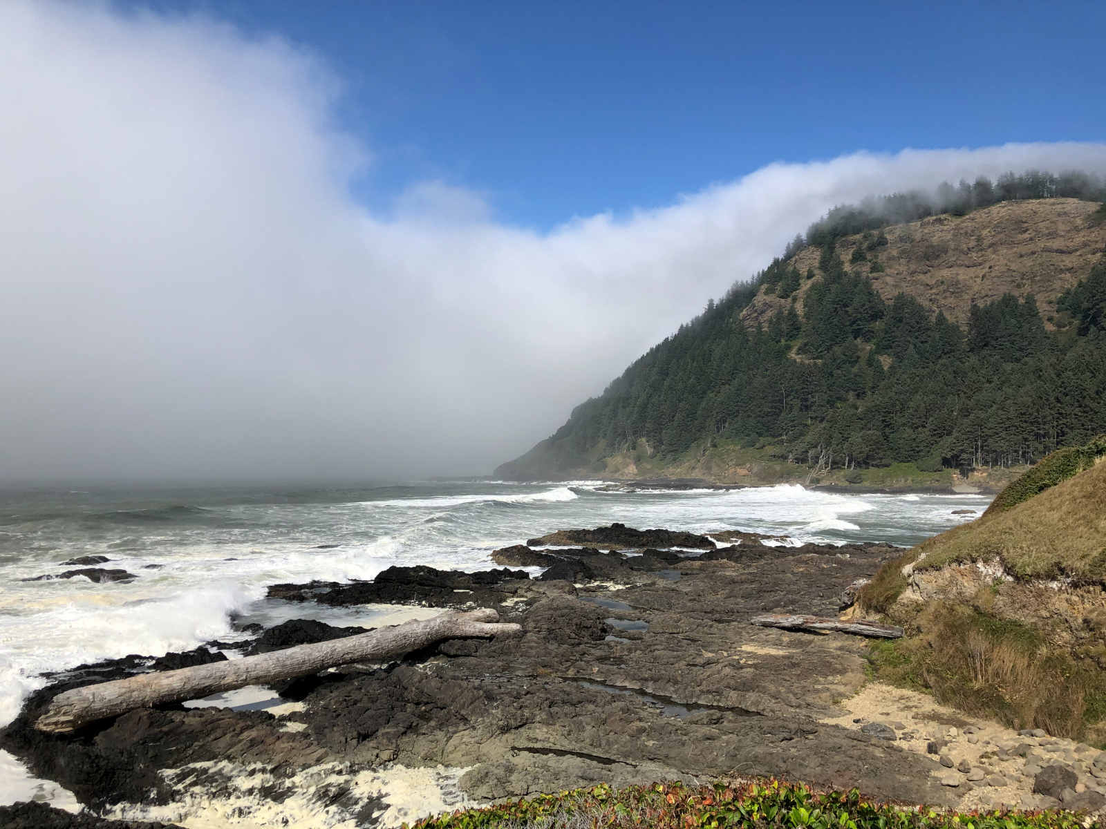 Lincoln City is quite lovely. It’s a beach town on the central coast of Oregon easily accessible from Eugene, Salem or Portland. There are many places to stay whether you’re into glamping, camping, resorts, B&Bs or rentals. The area is known for its seafood, kite festival, glassblowing and natural landmarks. Obviously, we were there for the beach. We stayed in a rented house walking distance from the sand and waves. It was cloudy and misty most of the time we were there and I don’t think it ever got warmer than 70 degrees. This was Scout’s first trip to a beach, and boy, he loved it. He took one look at the sand and assumed it was endless amounts of kibble. Eating sand didn’t sit well with his stomach though so I think he decided fetch and general exploration were more desirable.