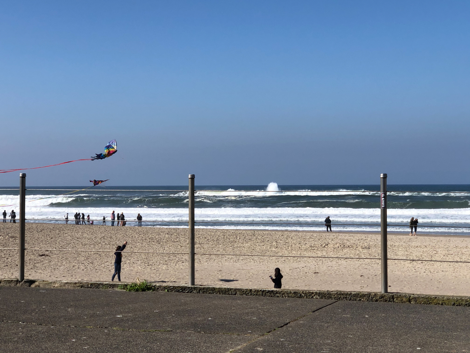 We could have spent hours hiking and exploring the lighthouses and places of interest. We decided to remain homebodies during this trip. The goal was to to avoid getting sick while enjoying time away from our actual home. We did spend one day traveling a bit South to Cape Perpetua to see the Devil’s Punchbowl and Spouting Horn. We saw it during the highest tide – the sea was truly restless and the salt spray in the air was palpable. It was very windy and very cold. Jimmy needed a warmer jacket. Some (not so clever) tourists hiked down to try to get a closer look at the Punchbowl and surrounding tide pools, but were constantly getting splashed by very large, very cold waves. I was not surprised to hear of how many accidents regularly happen in this area. Our last day fell on the Fall Kite Festival, but Covid-19 put a bit of a damper on the crowds. There weren’t more than 5 or 6 kites on the beach in total.